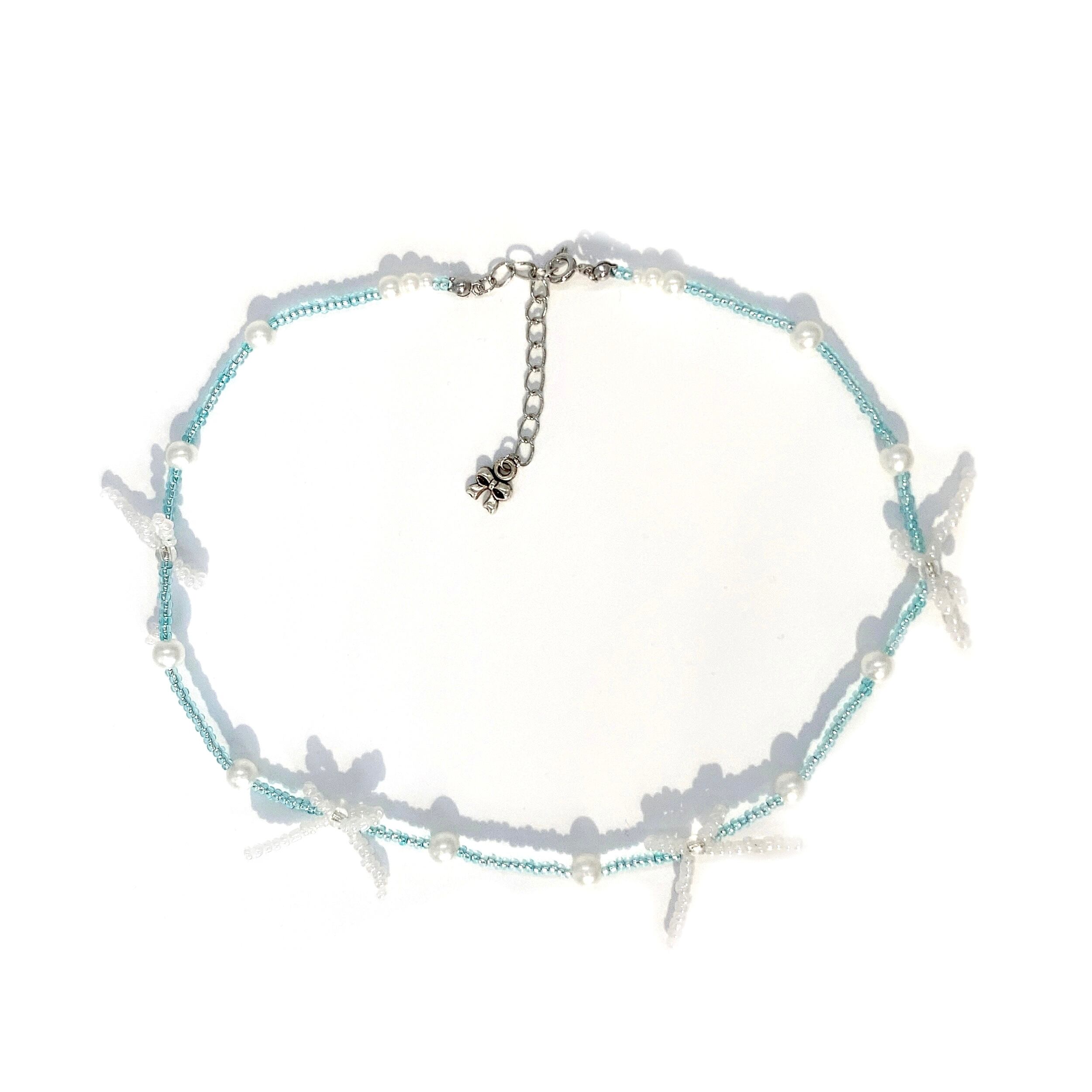 クリアなブルーとパールのリボンを